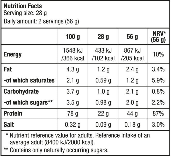 Verzehrempfehlung: Etwa 28 g in 300 ml fettarme Milch (1,5% Fett) oder Wasser einrühren und vorzugsweise vor und nach dem Training verzehren. Während der Diät kann zusätzlich ein Shake direkt nach dem Aufstehen oder als Zwischenmahlzeit verzehrt werden.