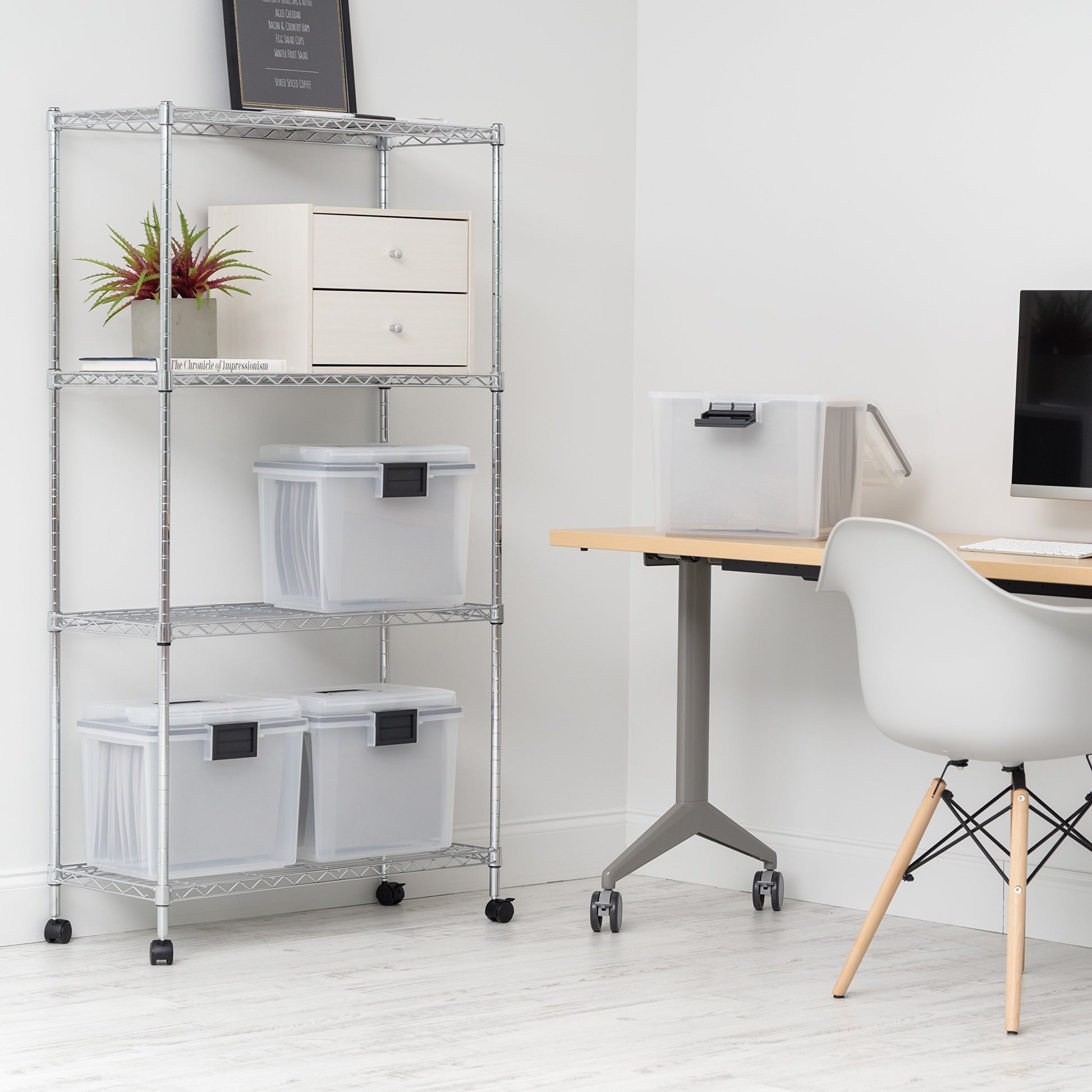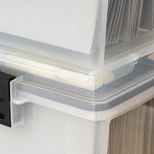 IRIS USA's Letter Size Plastic Storage Bin Tote Organizing File Box with Durable and Secure Lid with organizer top is fond by bankers and perfect filing storage organizer that can fit all your letter size items safely with the anti-break, durable polypropylene material manufactured in the USA. This water resistant document box has a ledge on the rim of the container. By hanging the files on the rims it makes it easy organize your documents. Built in handle makes it easy to carry the file boxes, making it odeal for bankers or other professionals. The handles are securely attached to the lid increasing portability. The lid also has a 4-compartment divider to maximize organization. The compartment comes in versatile 4 sizes and you can use it to put pens, thumbnails, clips, and etc. Plastic file box bin tote organizing container with durable lid and secure latching buckles has high quality seals in the lids, and preserve and protect valuables and important documents inside. It is perfectly designed for letter size files, documents, and paper. Utilize the filing box year round in the office, bank, home, and more to protect your valuables.