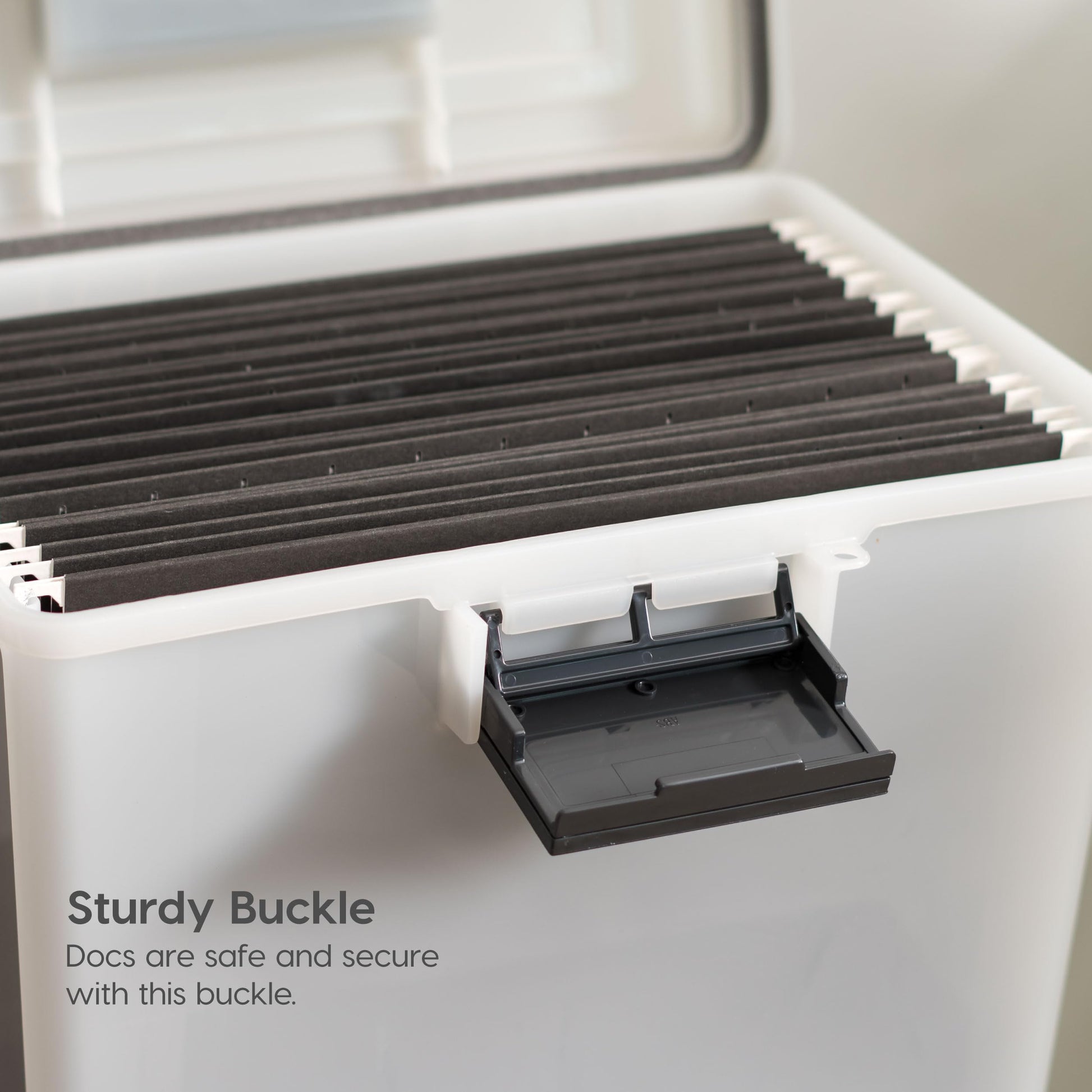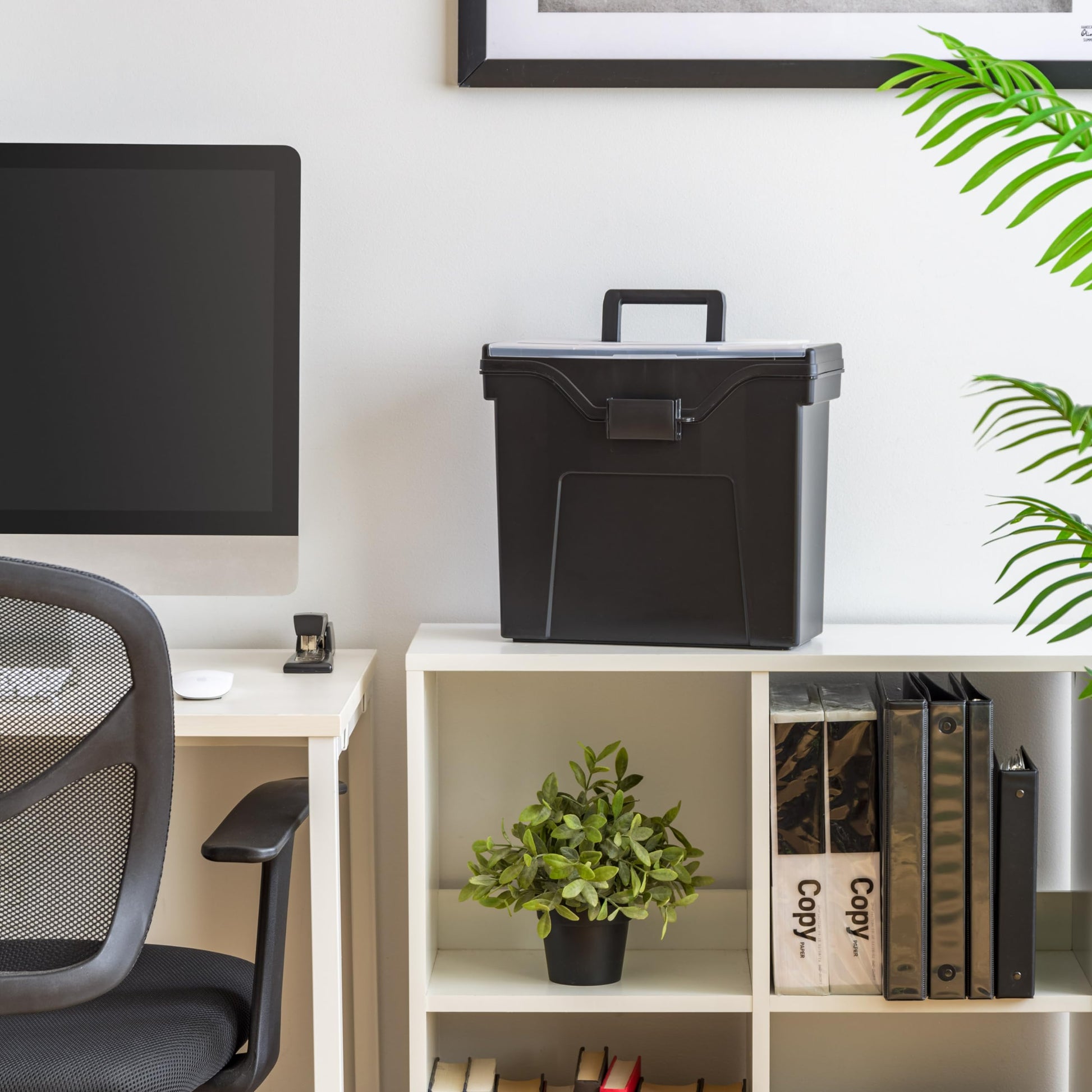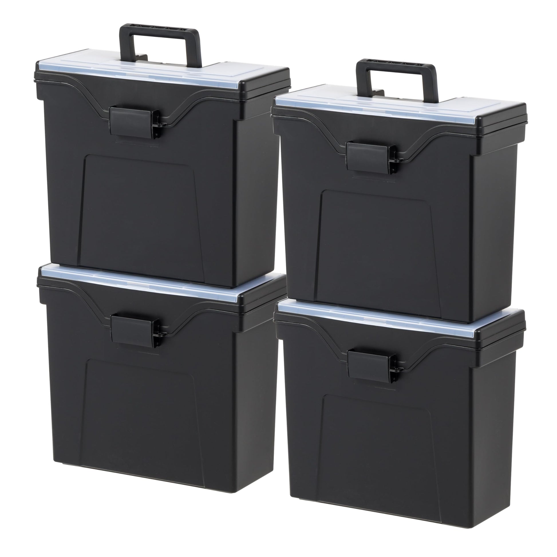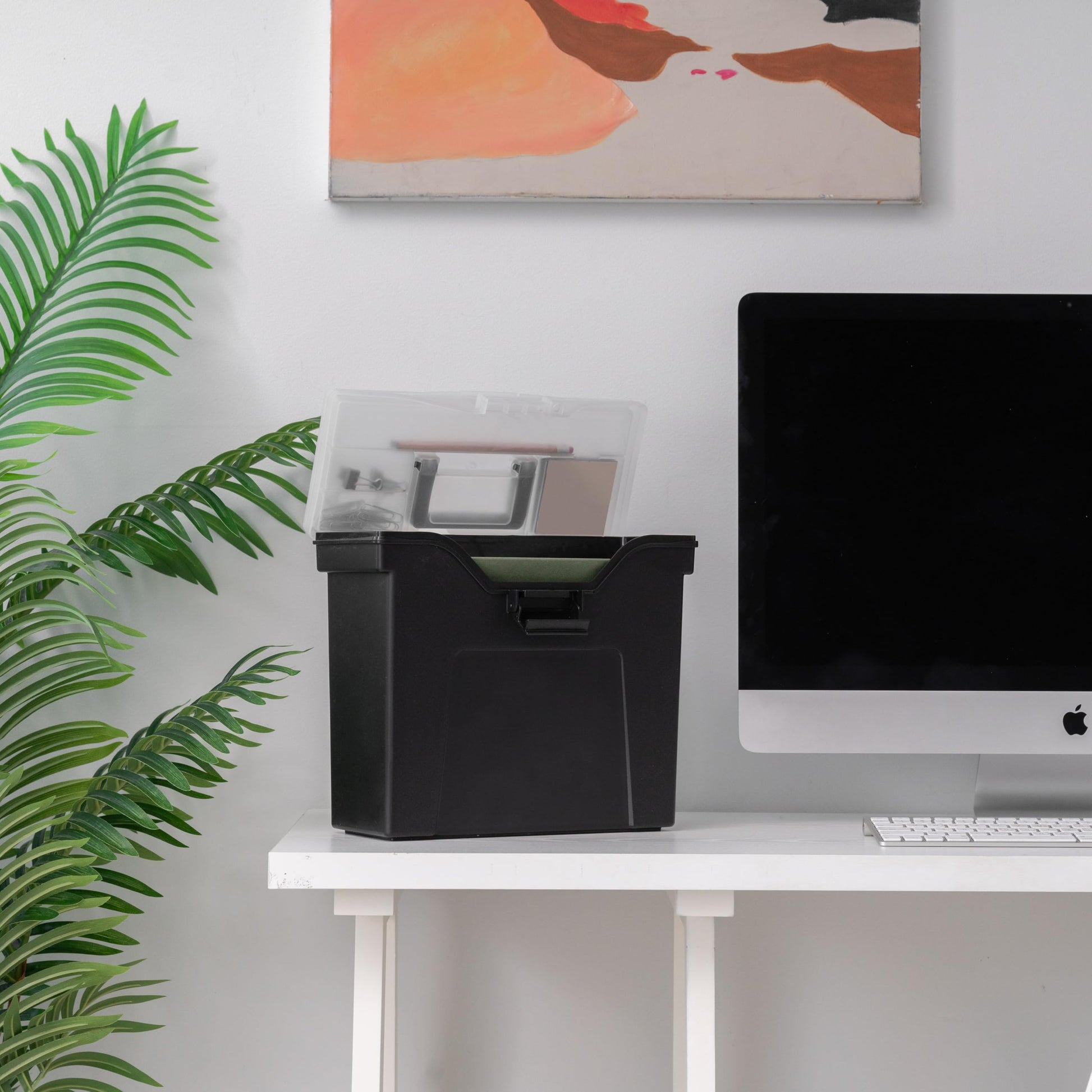 IRIS USA File Box with Lid File Organizer for Letter File w/ Organizer-Lid, Plastic Mobile Filing Organizer, Water Resistant Document Box, Portable File Box with Handle, Secure Buckle, Lockable, Black